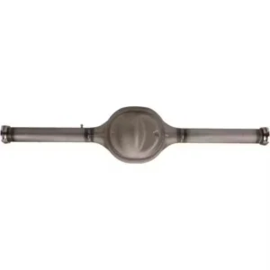 Total wheel-to-wheel mounting surface width is 54″ (from hub-to-hub). The pumpkin is centered in the housing, which puts the pinion 1″ offset from center, requiring different length axle shafts. This 54″ housing kit includes one 27-5/8″ long axle and one 25-1/4″ long axle. These custom cut and splined axle shafts are manufactured from an induction heat treated 1541 forged alloy. These axles are specific to the aftermarket brake configuration standard in that they have a 2.5″ brake space offset, 2.8″ register hub, and include late model large bearings (Torino bearings). Flanges are dual-drilled for both 5 on 4-1/2″ Ford/Mopar and 5 on 4-3/4″ GM wheel bolt patterns.