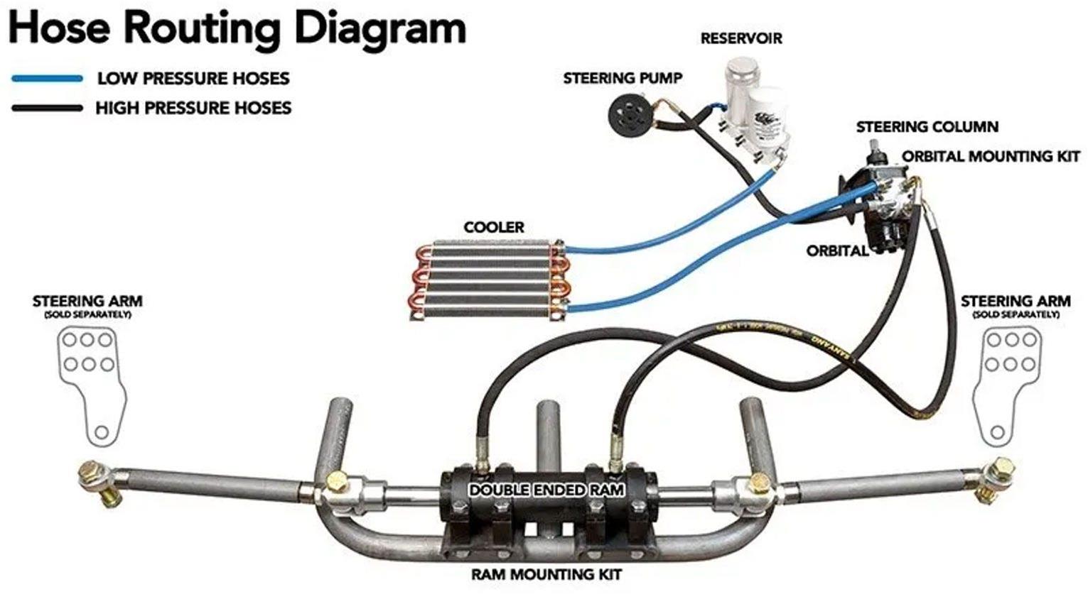 Hydraulic Steering Kit, Universal Full Hydraulic Steering Kit – 8-inch Ram