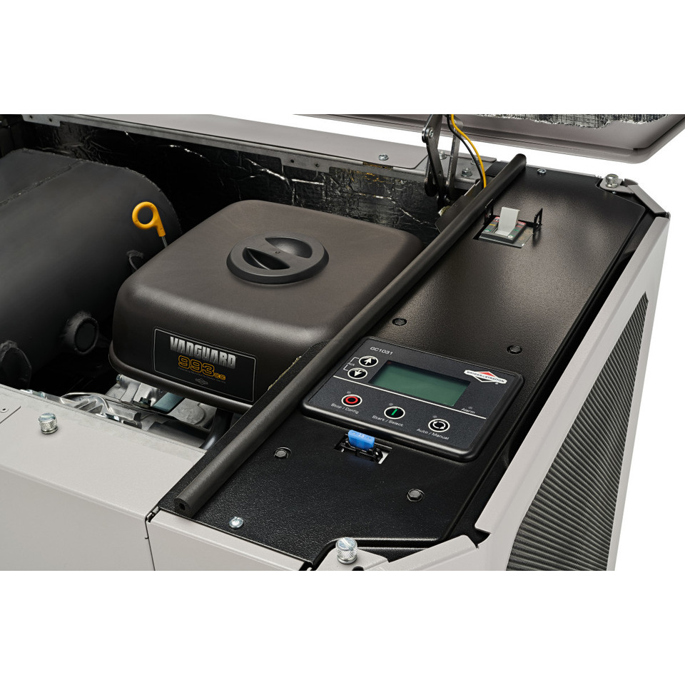The Briggs and Stratton 26kW Generator has a 993 cc V-Twin OHV Vanguard commercial-grade engine equipped with Low Oil Shutdown to prevent engine damage. This standby generator set also has a high temperature shutdown, LED display, and a built-in battery charger. The aluminum enclosure withstands hurricane-force winds up to 186 MPH.